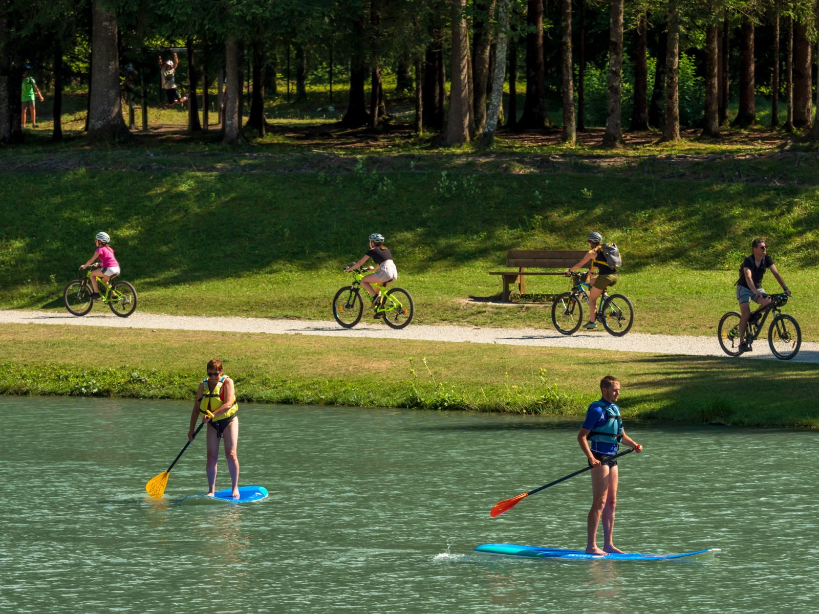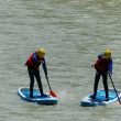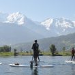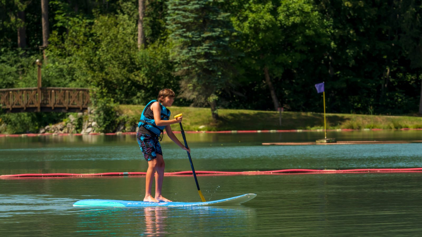Stand-up paddling is a water sport in which you stand up on a board that's longer than a traditional surfboard, propelled by a paddle.