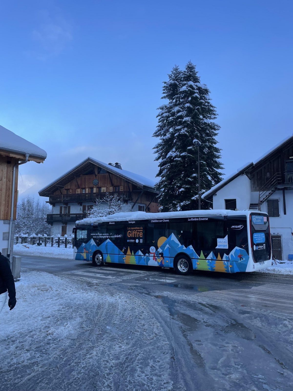 The ski bus takes you to the foot of the gondola Morillon.